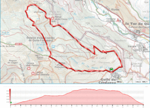 Caminada tranquila per un terreny boscós  poblat per la comunitat climàcica de pi negre ( Pinus uncinata ) i neret  (Rhododendron ferrugineum). Evitarem seguir la carretera que mena fins a l’estació de Guils Fontanera  i seguirem un camí  de pendent suau que ens durà fins el refugi de les Cases. Després d’una petita aturada, remuntarem  una costa,  que és  la morrena terminal de la gelera allà instalada, durant les glaciacions  i que ha donat lloc el Circ del Clots. Desprès d’esmorzar la vora del dos petits llacs , davallarem cap a Fontanera i allà pendrem el GR 11 fins Guils gaudint d’unes meravelloses vistes damunt de la Tossa d’Alp i la plana de la Cerdanya.