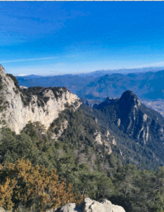 Sortirem del Santuari de Queralt que està situat a la serra del mateix nom, a 1156m i que per la seva ubicació se l’ha anomenat el balcó de Catalunya, i passarem pel costat de la capella de la cova, on segons la llegenda fou trobada la imatge de la mare de Déu. Més endavant trobarem els miradors de Garreta i el de les Guilles amb unes vistes espectaculars si no hi ha boira. Continuarem fins la capella de St. Joan i a partir d’aquí girarem a l’esquerra i en pujada seguirem pel PR-C73 fins la part alta de la cinglera.